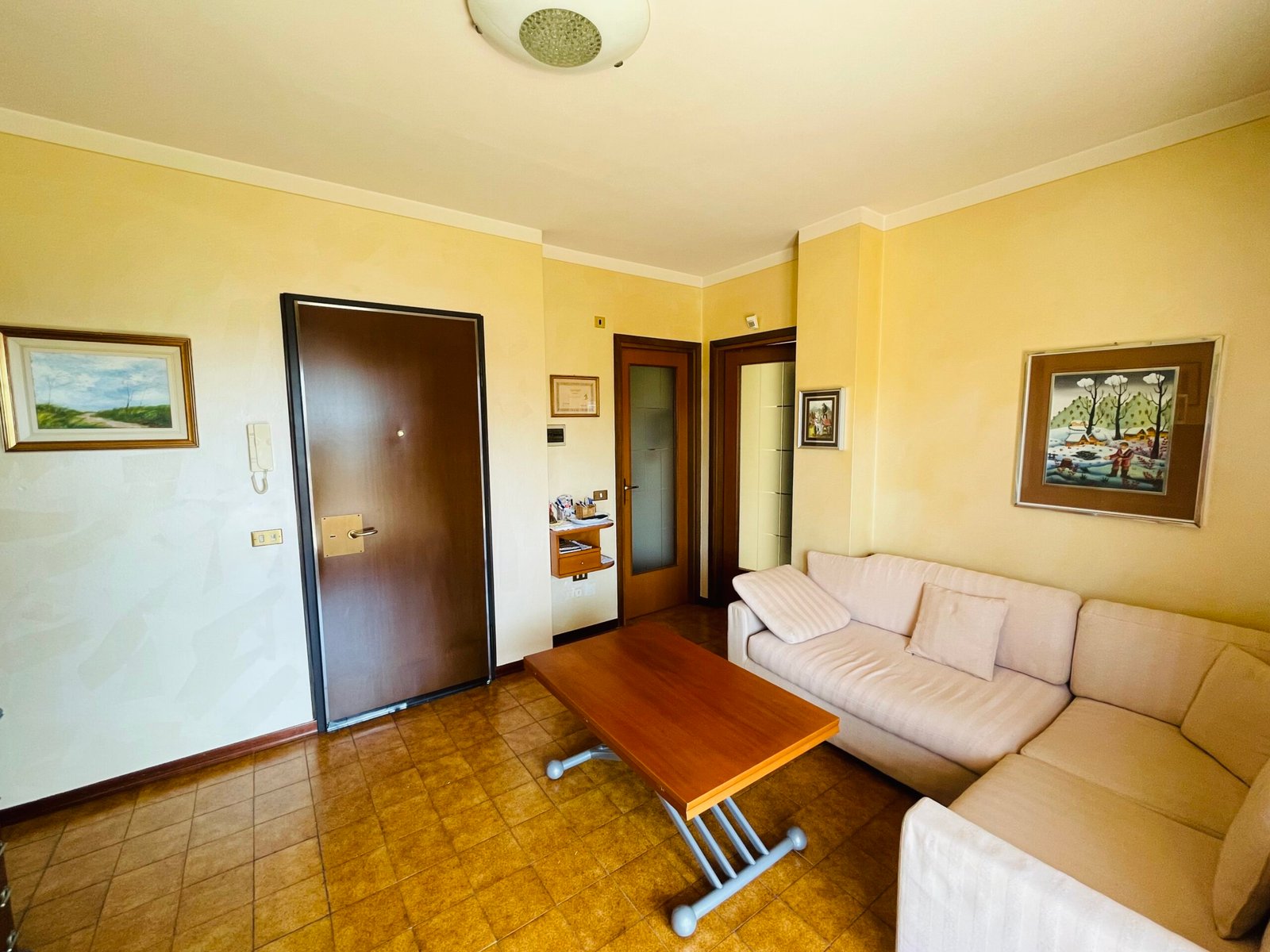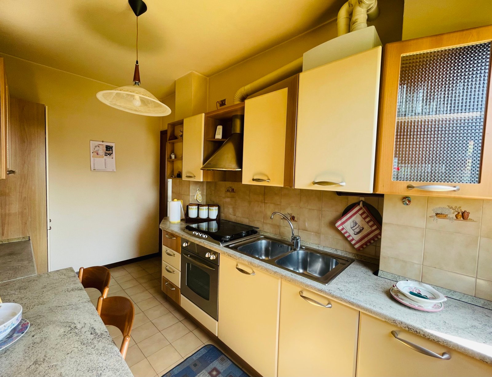 L’appartamento, composto da tre locali e servizi, accoglie con un ingresso invitante che conduce a un ampio soggiorno e a una cucina separata. La camera da letto matrimoniale, con pavimento in ceramica, offre un’atmosfera confortevole e rilassante, mentre il bagno completa la disposizione interna. In aggiunta un’altra camera singola molto spaziosa. Un terrazzino accessibile dal soggiorno permette di godere dell’aria aperta e del panorama circostante